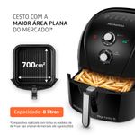 CAPACIDADE DE 8 LITROS + CESTO QUADRADO: Considerado o cesto com a maior área plana da categoria*, ele acomoda melhor os alimentos, permitindo assar e fritar por igual.