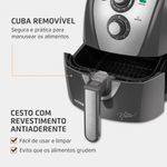CAPACIDADE DE 4 LITROS + CESTO QUADRADO: Considerado o cesto com a maior área plana da categoria*, ele acomoda melhor os alimentos, permitindo assar e fritar por igual.