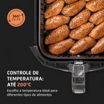 CONTROLE DE TEMPERATURA ATÉ 200°C: Permite a escolha da temperatura ideal para diferentes tipos de alimentos.