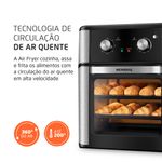 TECNOLOGIA DE CIRCULAÇÃO DE AR QUENTE: A Air Fryer é equipada com uma tecnologia que aquece e circula o ar. O ar superquente envolve e cozinha o alimento, sem a necessidade de usar óleo.