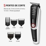 PENTES DE CORTE + PENTE AJUSTÁVEL: Acompanha 4 pentes de corte com 3mm, 6mm, 9mm e 12mm, além de pente ajustável com 16 níveis de altura, para aparar os pelos no comprimento que preferir.