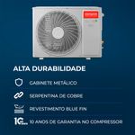 Alta durabilidade: Gabinete metálico, serpentina de cobre, revestimento Blue Fin e 10 anos de garantia no compressor;