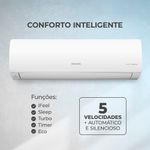 Conforto Inteligente: Funções iFeel, Sleep, Timer 24h, Turbo, Eco, controle de consumo com 4 níveis, oscilação automática e até 5 posições da vane;
