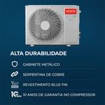 Alta durabilidade: Gabinete metálico, serpentina de cobre, revestimento Blue Fin e 10 anos de garantia no compressor;