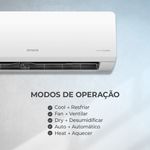 Desempenho Confiável: 4 modos de operação (resfriar, ventilar, desumidificar e automático), 5 velocidades de ventilação, fluxo de ar de longo alcance, autodiagnóstico e funcionamento em ampla faixa de tensão;