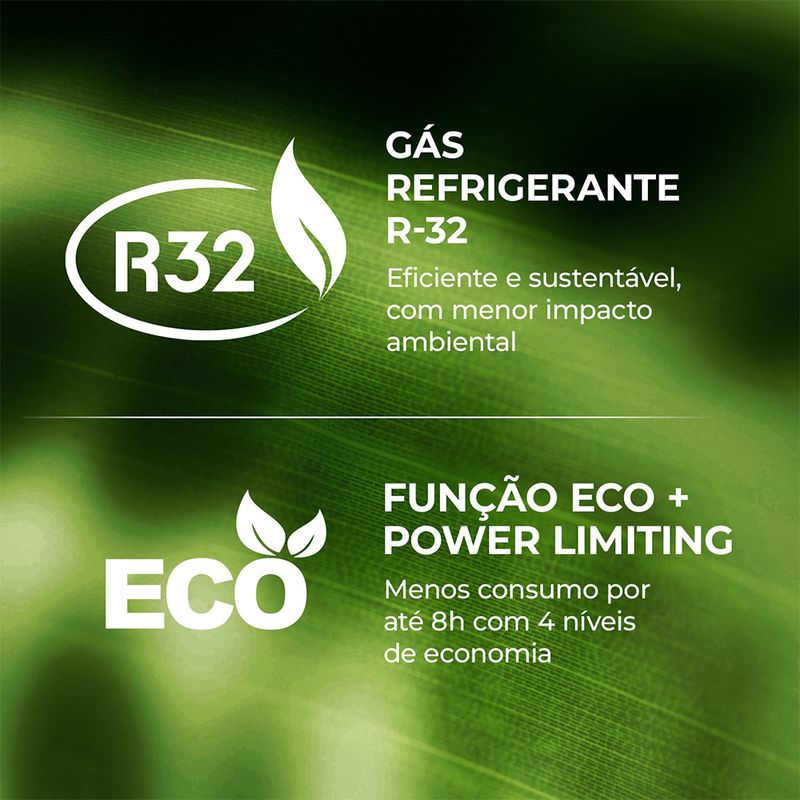 Conforto Inteligente: Funções iFeel, Sleep, Timer 24h, Turbo, Eco, controle de consumo com 4 níveis, oscilação automática e até 5 posições da vane;