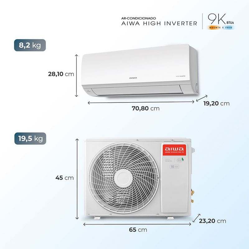 O aparelho conta com 4 modos de operação (frio, ventilação, desumidificação e automático), 5 velocidades de ventilação e oscilação automática da vane com até 5 posições ajustáveis. Com fluxo de ar de longo alcance, autodiagnóstico, controle remoto iluminado e funcionamento em ampla faixa de tensão, o ar-condicionado Aiwa une potência, economia, conectividade e bem-estar, tudo isso com a tradição e qualidade de uma marca referência em tecnologia e inovação.