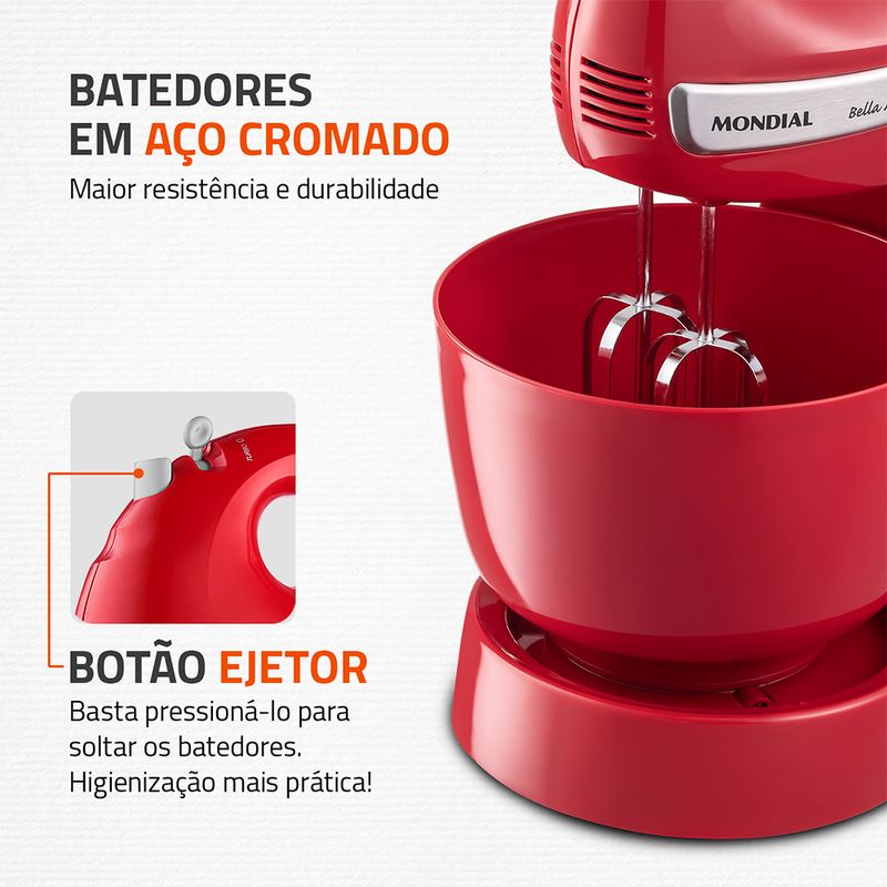 SISTEMA EXCLUSIVO DE FIXAÇÃO: Sistema desenvolvido pela Mondial para facilitar a montagem da batedeira e sua limpeza.