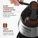 ECOLOGICAMENTE CORRETA: O filtro permanente com porta-filtro removível dispensa a utilização do filtro de papel e proporciona mais economia e sustentabilidade.
