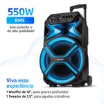550W RMS de potência: Para uma experiência sonora potente com alta qualidade e performance.