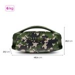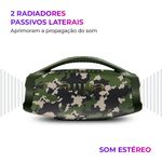 A Boombox conta com dois radiadores passivos laterais, que atuam em conjunto com os alto-falantes para aprimorar a propagação do som.