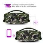 Com a tecnologia TWS (True Wireless Sound), você sincroniza duas Boombox Plus AWS-BBS-01-GR e duplica a potência sonora.