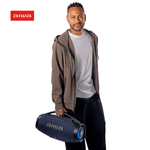 Sinta a experiência sonora impactante com os 200W RMS de potência da caixa portátil AIWA. Você será levado pela música com graves mais profundos e som potente. E, com a tecnologia Energy Saving, você mantém os 200W de potência até ouvindo música na bateria (fora da tomada).