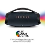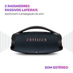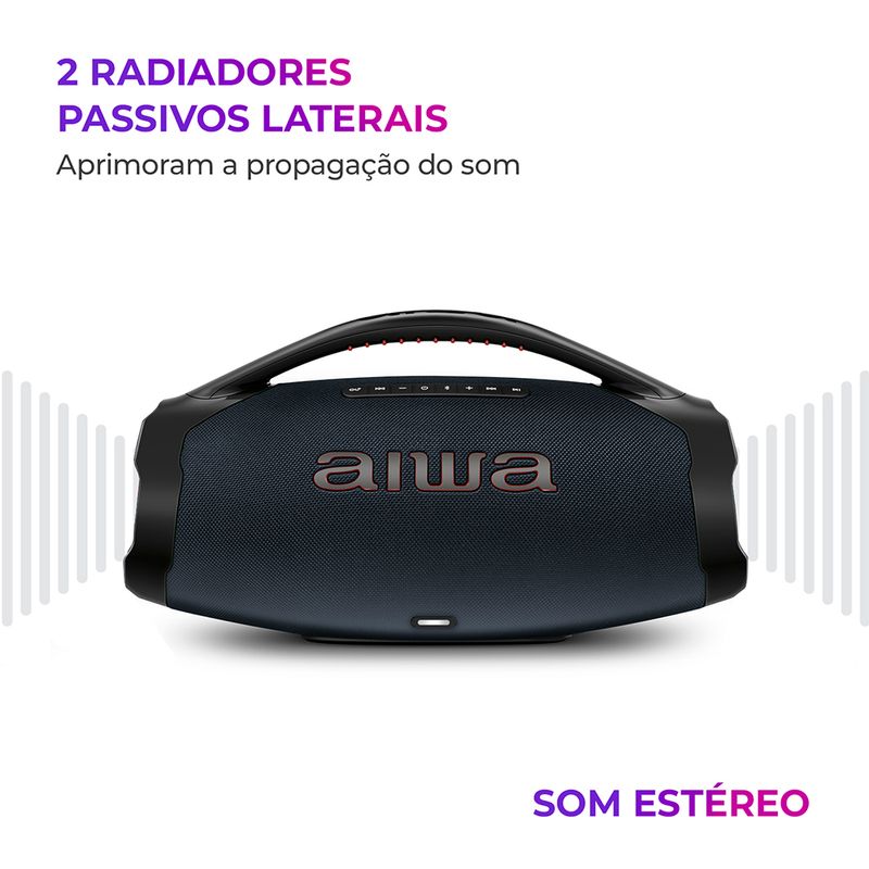 Reunir nossa família e amigos e desfrutar de uma boa música é um dos prazeres da vida, né? Curta um som potente e de alta definição com a Boombox Light Plus AWS-BBS-01-LBL! A caixa de som portátil foi projetada com sistema de som de 3 vias - 1 subwoofer, 2 midranges e 2 tweeters -, além de ter dois radiadores passivos laterais, 200W RMS de potência e o DNA japonês da marca AIWA. Com o certificado IP66, você e sua turma podem ouvir sua playlist favorita na beira da piscina ou na praia sem preocupação, já que a Boombox é resistente a jatos potentes de água e tem proteção total contra poeira. Incrível, né? Saiba mais sobre a Boombox Light Plus AWS-BBS-01-LBL: