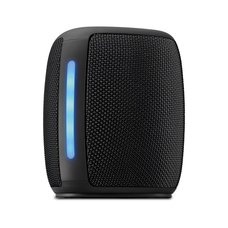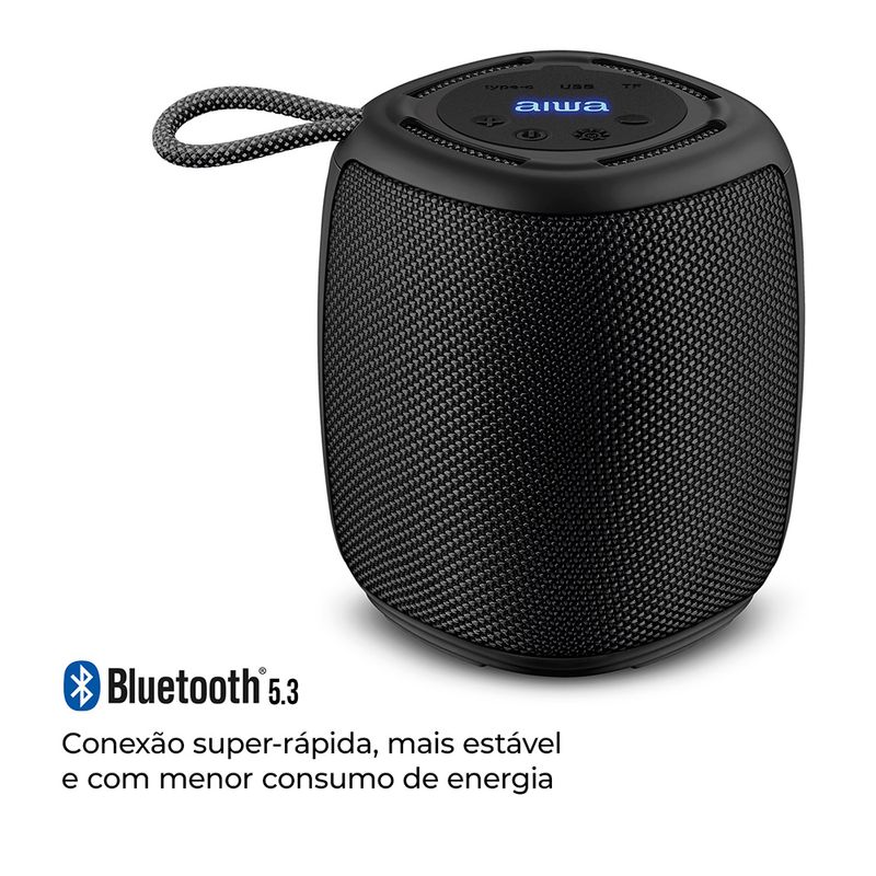 Seu design moderno e charmoso possui revestimento de tecido, além de uma alça prática para o transporte. E, graças à certificação IPX4, AWS-SP-03-BLtem maior durabilidade, já que possui resistência contra respingos de água.