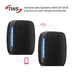 Som portátil: Com 15W RMS de potência, o Speaker AWS-SP-03-B oferece um som claro e equilibrado, com uma boa resposta de graves e agudos.