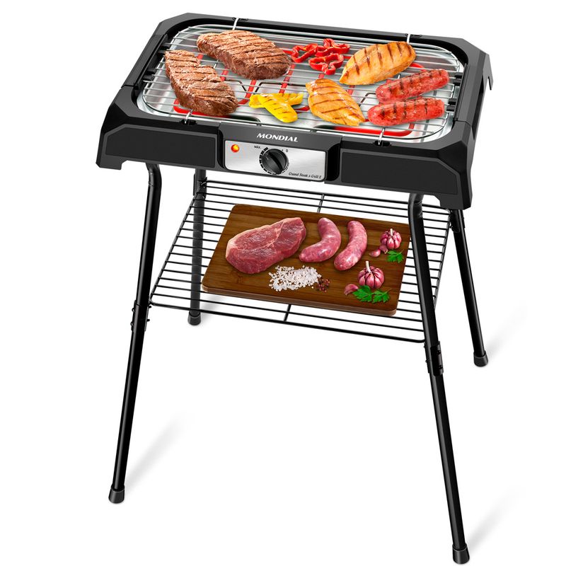A Churrasqueira Elétrica Grand Steak & Grill II Mondial CH-06 é perfeita para quem adora churrasco, mas tem pouco espaço, pois é compacta e não faz fumaça! Ótima para apartamentos e ambientes fechados, acompanha pedestal desmontável e prateleira, para auxiliar nos preparos. Grelha carnes, frangos, espetos e muito mais, graças à sua alta potência e ao controle de temperatura. Saiba mais sobre a CH-06 da Mondial: