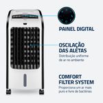 4 EM 1: O climatizador Mondial resfria, umidifica, filtra e ventila o ambiente, garantindo um cômodo fresco e confortável.