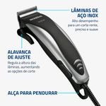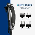 PENTES DE CORTE: Acompanha 4 pentes de corte com 3mm, 6mm, 9mm e 12mm que oferecem mais versatilidade e opções de corte.
