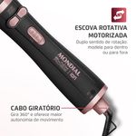 Escova Rotativa Motorizada: A escova Mondial combina rotação automática com o calor do secador, simulando o efeito da escovação. Fácil de usar, basta escolher a temperatura e deslizar a escova no cabelo úmido, das raízes até as pontas.