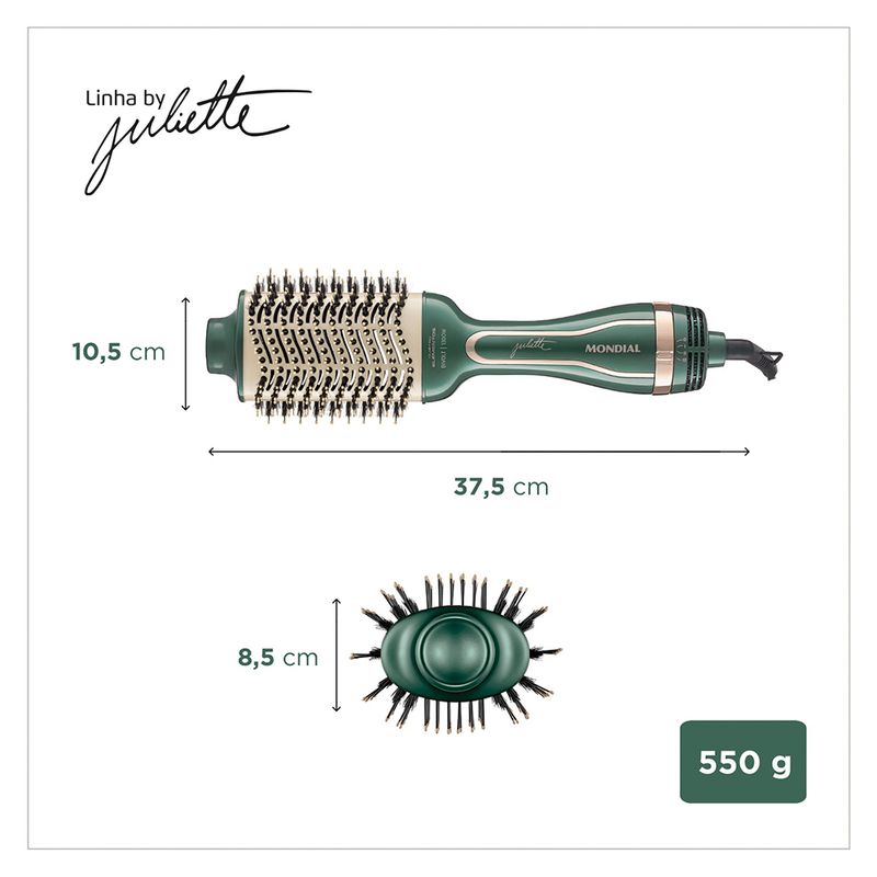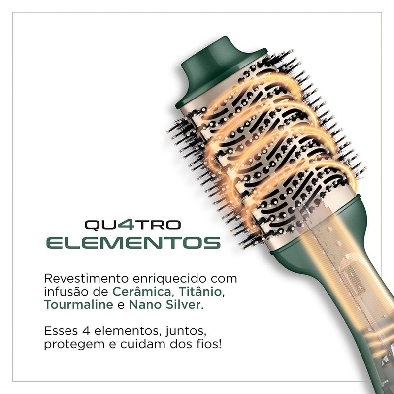 A Escova Secadora da Linha by Juliette Qu4tro Elementos traz um revestimento especial enriquecido com infusão de Cerâmica, Titânio, Tourmaline e Nano Silver. Esses 4 elementos, juntos, protegem seus fios e garantem uma aparência mais saudável aos cabelos, com brilho intenso, maciez e sem frizz. Saiba mais sobre a Escova Secadora ES-JU-02: