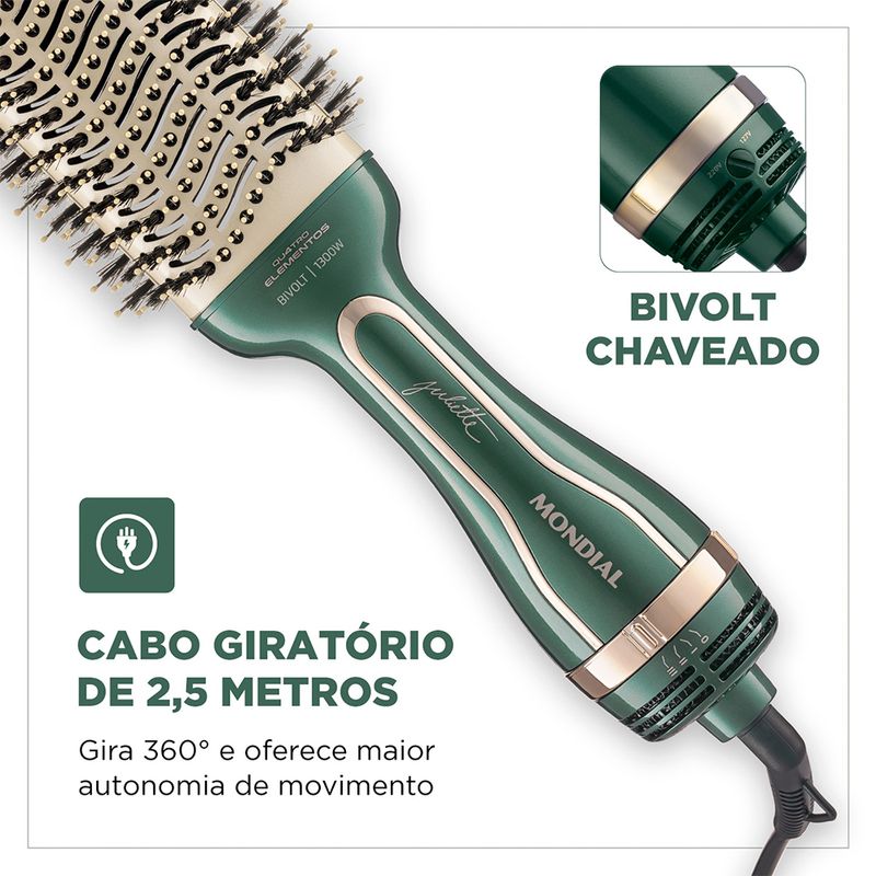 BIVOLT: Pode ser utilizada em ambas voltagens: 127V e 220V. Basta ajustar a chave seletora e ter a liberdade para usar sua escova em qualquer lugar!