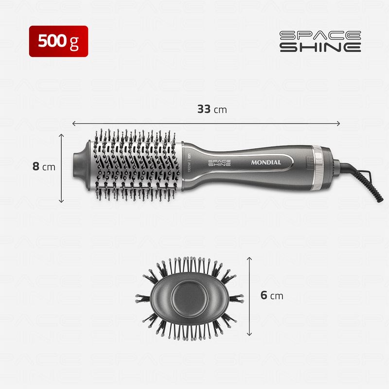 A Escova Secadora SPACE SHINE da Mondial destaca-se por seu design slim e moderno, ideal para modelar cabelos curtos e franjas com precisão. Sua tecnologia avançada garante hiper brilho aos fios, incrível né? O revestimento cerâmico, combinado com o Tourmaline Íon, protege os fios durante a modelagem, reduz o frizz e proporciona um brilho radiante. Além disso, seu tamanho compacto é fácil de transportar, tornando-a perfeita para viagens. Saiba mais sobre a ES-20 da Mondial: