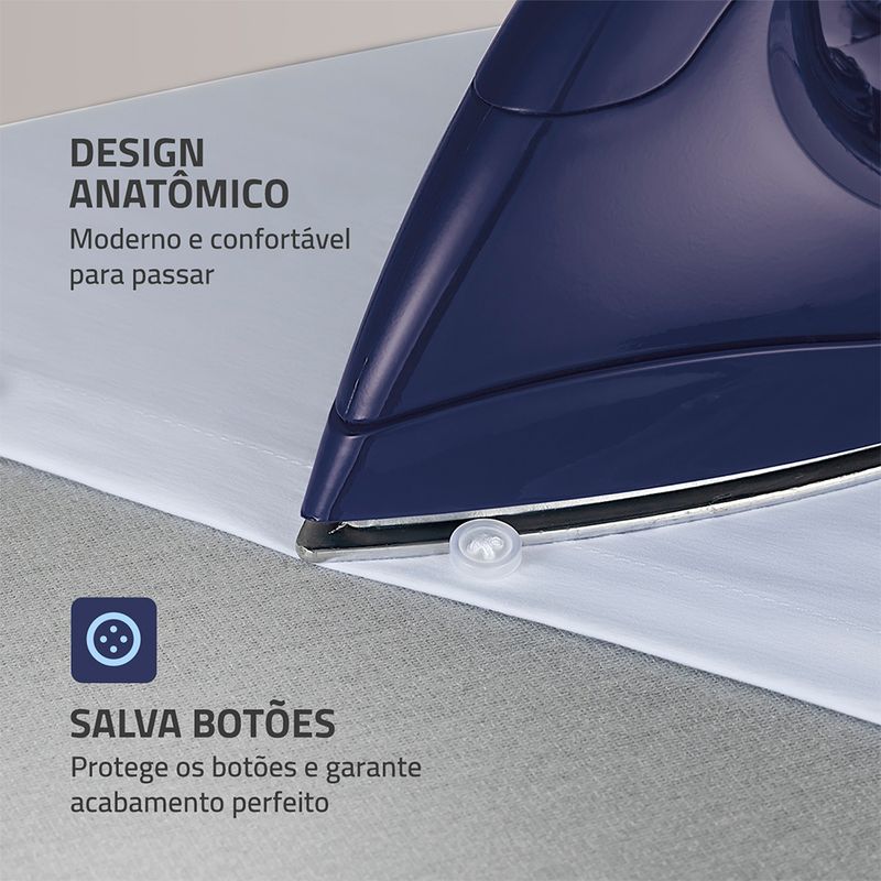 DESIGN ANATÔMICO: O ferro de passar da Mondial tem design moderno e confortável para passar suas roupas com mais facilidade.