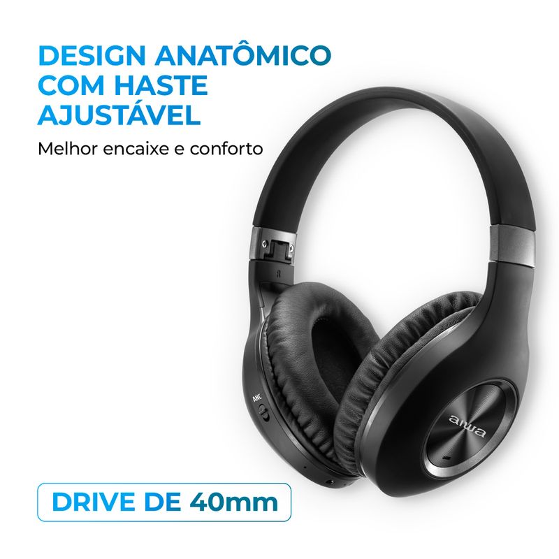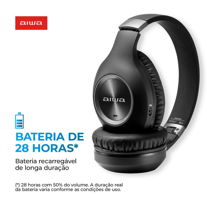 Som de alta qualidade? Temos! O Headphone AWS-HP-02-B promove uma verdadeira experiência e você consegue ouvir claramente graves potentes! O lançamento com a assinatura AIWA tem CANCELAMENTO ATIVO DE RUÍDO (ANC) e você consegue bloquear ruídos e sons indesejados no ambiente. Além disso, a BATERIA DE ALTO DESEMPENHO proporciona até 28 horas de uso contínuo. Saiba mais sobre o AWS-HP-02-B da AIWA: