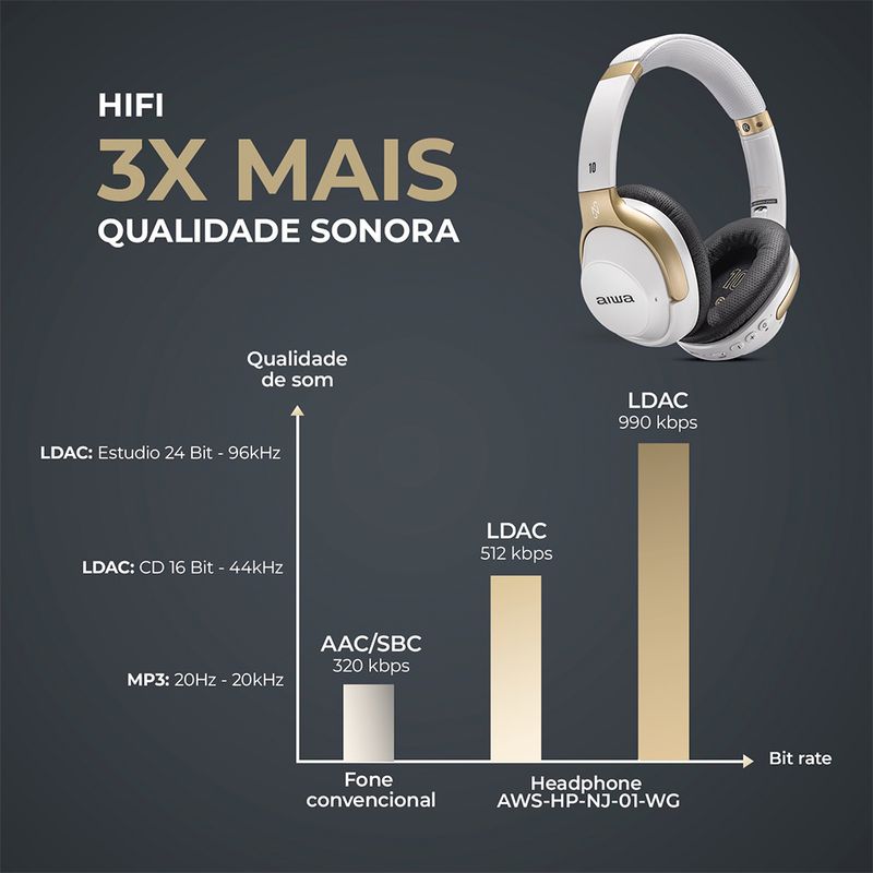 Áudio hi-fi com 3x mais qualidade sonora: qualidade de estúdio com codec LDAC que transmite até 990 kbps, 24 bits / 96 kHz;