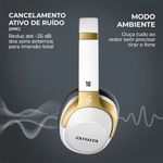 Cancelamento Ativo de Ruído (ANC): reduz até –35 dB dos sons externos para imersão total;