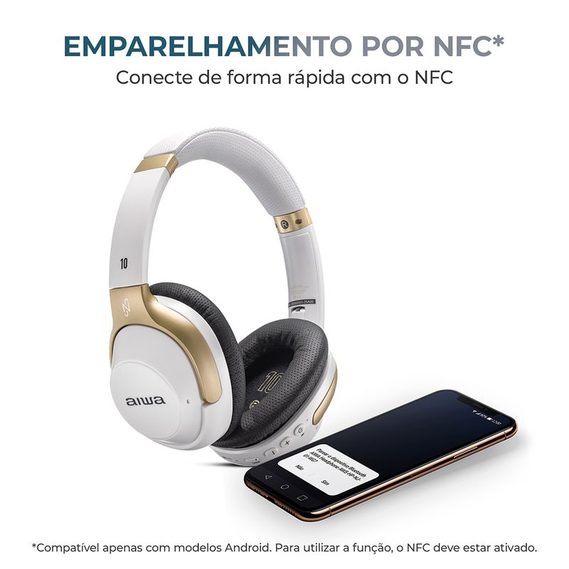 Emparelhamento por NFC: toque seu celular Android no fone e conecte em segundos;