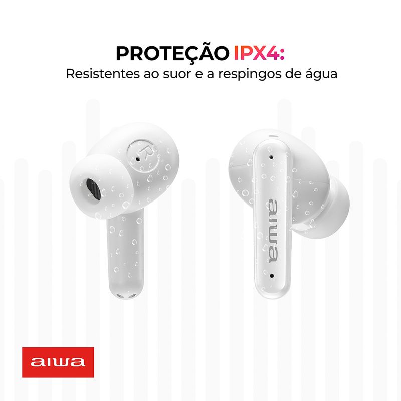 Proteção IPX4: Resistente a suor e a respingos de líquidos, o Earbud AWS-EB-04-W pode acompanhar nos treinos, no trabalho e nas aventuras pelas ruas. A música não vai parar, independentemente de onde você estiver;