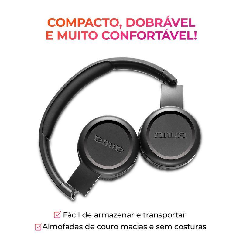 A conexão dupla permite conectar o smartphone e o notebook ao mesmo tempo e alternar o uso deles automaticamente, sem interrupções. A versão do Bluetooth 5.2 entrega áudio estável e quase em tempo real. Já o assistente de voz facilita o controle de músicas e das tarefas do dia a dia diretamente pelo fone. E tem mais: AWS-HP-03-B é dobrável e compacto, permitindo que você tenha som de qualidade onde estiver sem precisar de muito espaço. Conheça melhor o fone apaixone-se por ele!