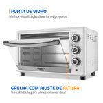 Mais Praticidade: A regulagem de altura da grelha em três níveis oferece versatilidade para um cozimento ideal, conforme o tipo de alimento.