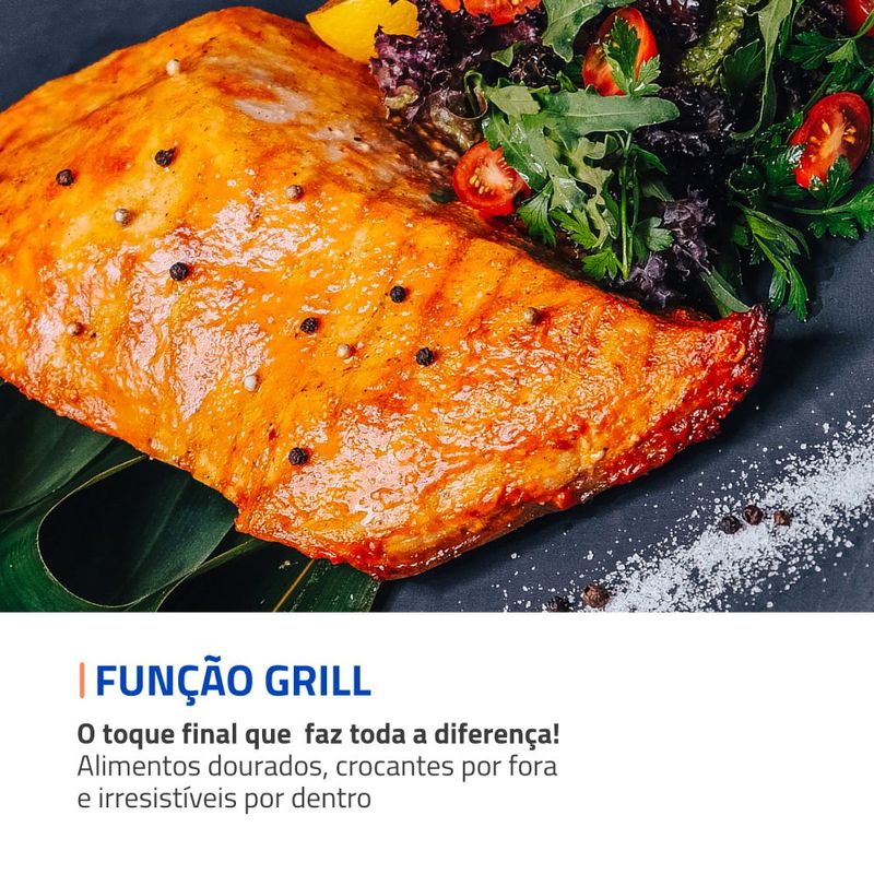 Multifunções: Versátil, pode ser utilizado para aquecer, assar, tostar, gratinar, grelhar e dourar de maneira rápida e eficiente.