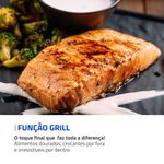 Mais Praticidade: A regulagem de altura da grelha em três níveis oferece versatilidade para um cozimento ideal, conforme o tipo de alimento.