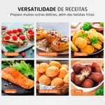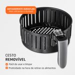 Cozinhe alimentos mais saudáveis e sem óleo com a nova Fritadeira a Ar Maxis AF-33. Com capacidade de 3,2L, você assa, cozinha, frita e gratina seus alimentos. São 1270W de potência para preparar: batata frita congelada (12 min.), nuggets (15 min.), frango (20 min.), carnes (12 min.) peixes (10 min.), pão de queijo (15 min.), bolo (30 min.), dentre outras receitas maravilhosas. A Fritadeira a Ar Maxis AF-33 Preta possui as lâmpadas piloto que indicam funcionamento e aquecimento do produto, o controle de temperatura de até 200C e timer de 60 minutos com aviso sonoro e desligamento automático. A cuba e cesto possuem revestimento antiaderente que não gruda, e facilita na lavagem.