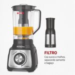 COM FILTRO: O filtro é feito de tela inox micro perfurada eletronicamente, excelente para coar sucos e molhos. É perfeito para tornar sua vida mais prática!