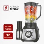 12 VELOCIDADES + PULSAR/GELO: Escolha a velocidade ideal para alcançar a textura perfeita! A função Pulsar/Gelo tritura até os ingredientes mais duros, como gelo e polpa de fruta.