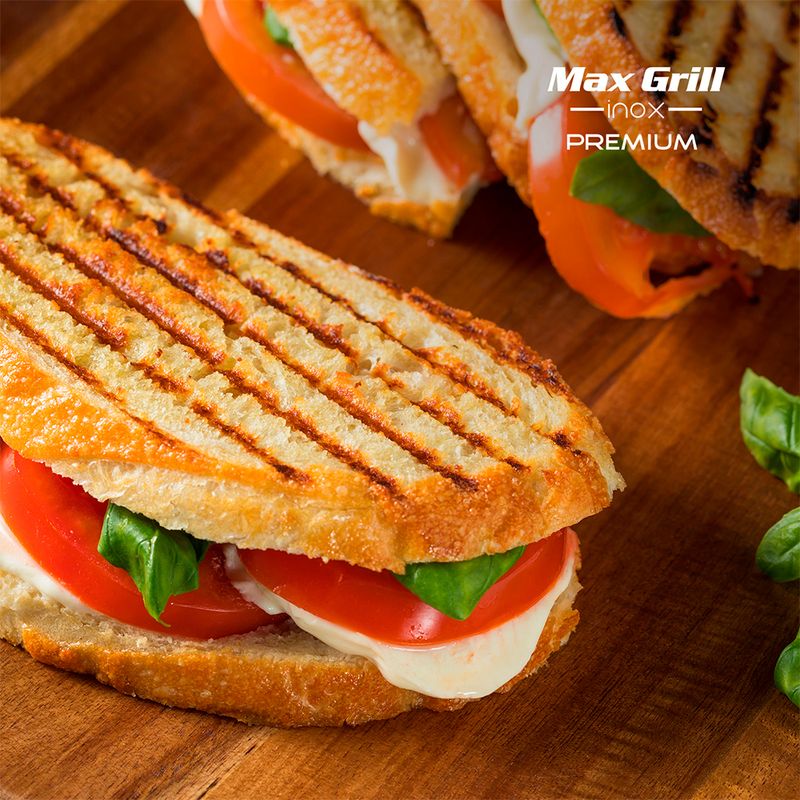 2 EM 1: Versátil, o Max Grill funciona como grill e sanduicheira. Você pode preparar carnes, peixes, vegetais, pães, hambúrguer, entre outros.