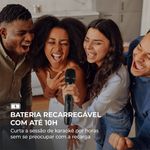 BATERIA RECARREGÁVEL COM ATÉ 10H: Curta a sessão de karaokê por horas sem se preocupar com a recarga;