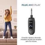 PLUG AND PLAY: Conecta facilmente na entrada P10, permitindo o uso imediato de até dois microfones com áudio de alta qualidade;