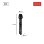 FREQUÊNCIA UHF: O par de Microfone Sem Fio AWS-MIC-01 conta com a tecnologia UHF, aumentando a qualidade da transmissão do sinal e prevenindo interrupções causadas por interferências externas. Perfeito para seus momentos de diversão.
