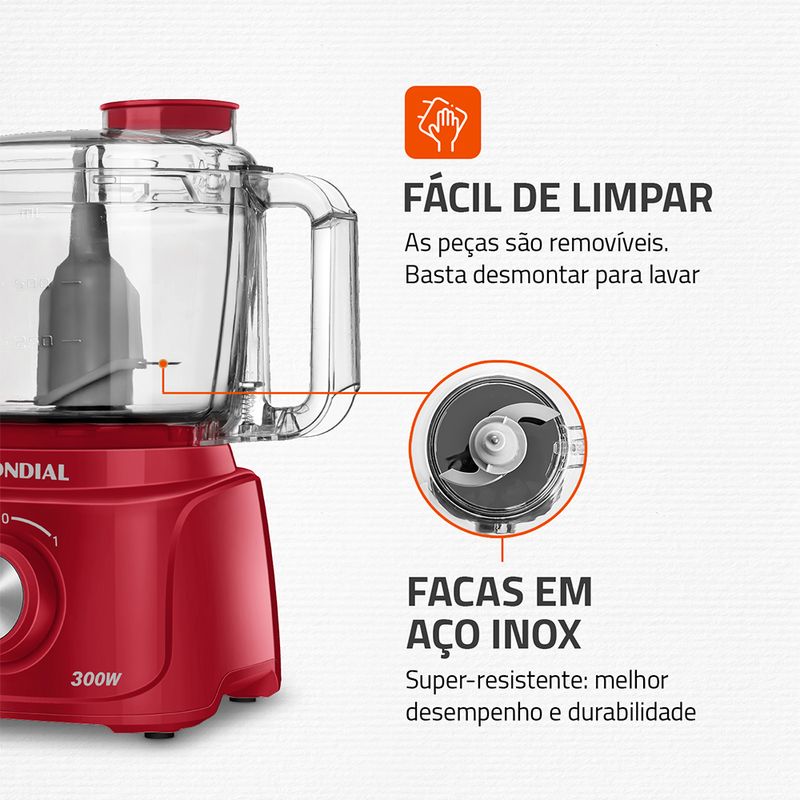 VERSATILIDADE DE RECEITAS: O mini processador Mondial processa, corta, mistura, pica, mói e tritura. Você pode preparar mousses, maionese, moer temperos, triturar queijos e muito mais.