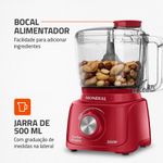 BOCAL ALIMENTADOR: Adicione verduras, legumes ou temperos, para um processamento mais ágil, sem necessidade de remover a tampa.