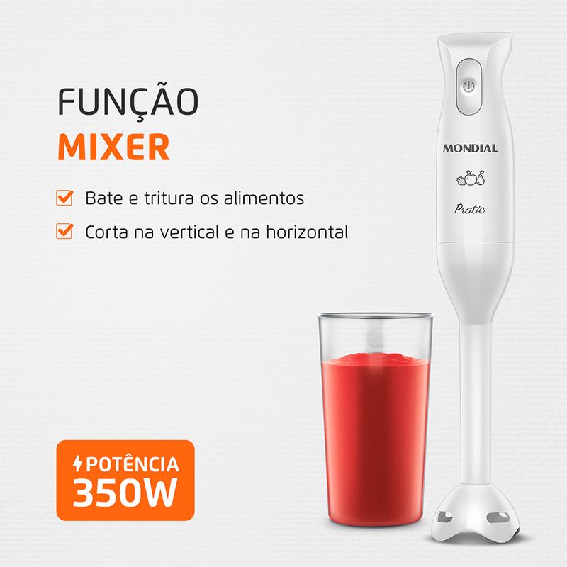 O Mixer M-15 da Mondial é garantia de praticidade no seu dia a dia. O item é o 2 em 1 perfeito para a sua cozinha: ele bate e tritura diversos alimentos simultaneamente e proporciona receitas com uma textura homogênea. É ideal para preparar vitaminas, caldos, sopas, cremes, purês, papinhas de bebê e até desfiar frango. Conheça todos os benefícios do Mixer M-15 da Mondial: