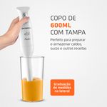 O mixer é leve, de manuseio confortável e fácil acionamento liga-desliga. O resultado? Praticidade na sua rotina na cozinha!