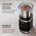 Trava de Segurança: Para sua proteção, o moedor funciona apenas quando a tampa está devidamente encaixada e travada.