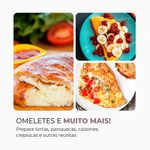 OMELETE E MUITO MAIS! Você pode preparar diversas receitas, como tortas, panquecas, calzones, crepioca, tortilha e muito mais. Libere a criatividade e mãos à obra!